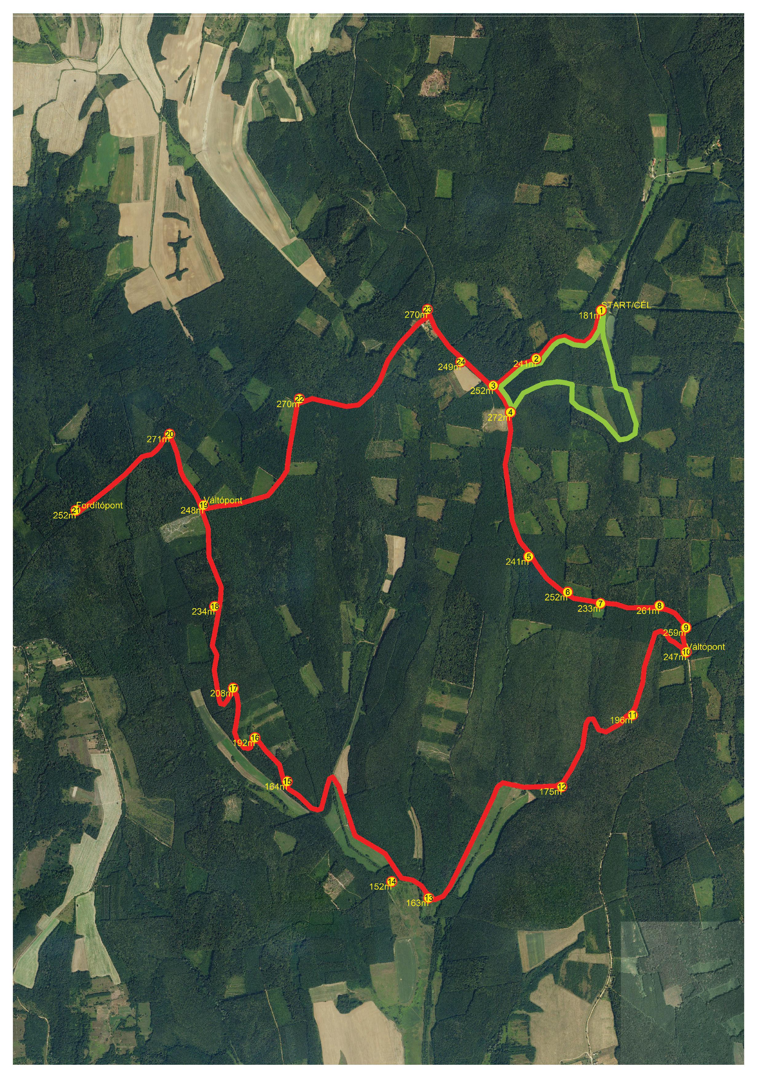 Félmaraton km - zömmel aszfaltos, rövid szakaszon szórt köves, időjárásbiztos útvonal: