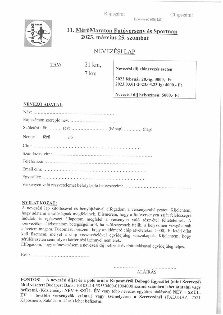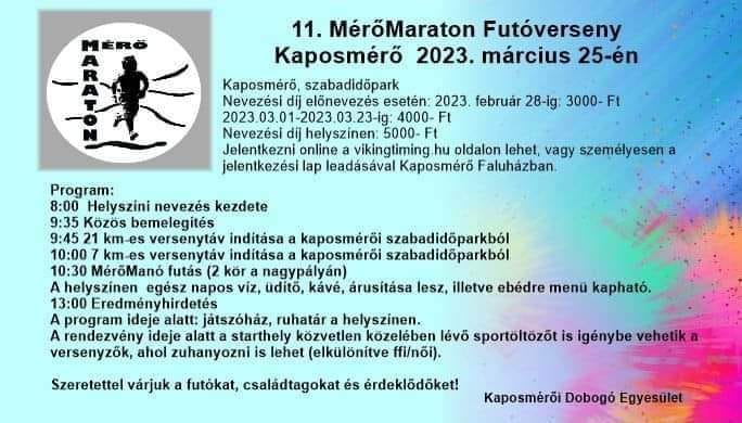 7 és 21 km-en ismét #MérőMaraton! A Kaposmérői Dobogó Egyesület 2023-ban újra, immár 11. alkalommal rendezi meg a közkedvelt futóversenyt.