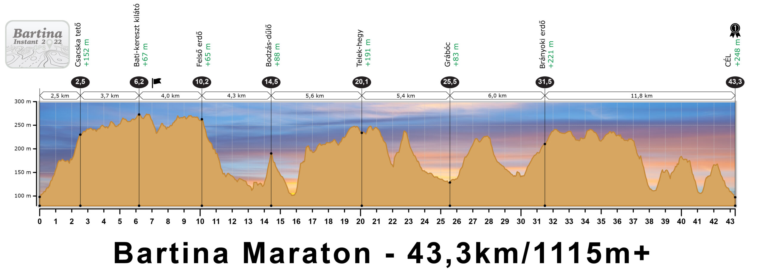 Távolság43.3kmSzint1115mEsemény kezdete2022. január 29. 5:00Esemény vége2022. január 29. 19:00Szintidő12:00teljesítménytúrázásBartina 30