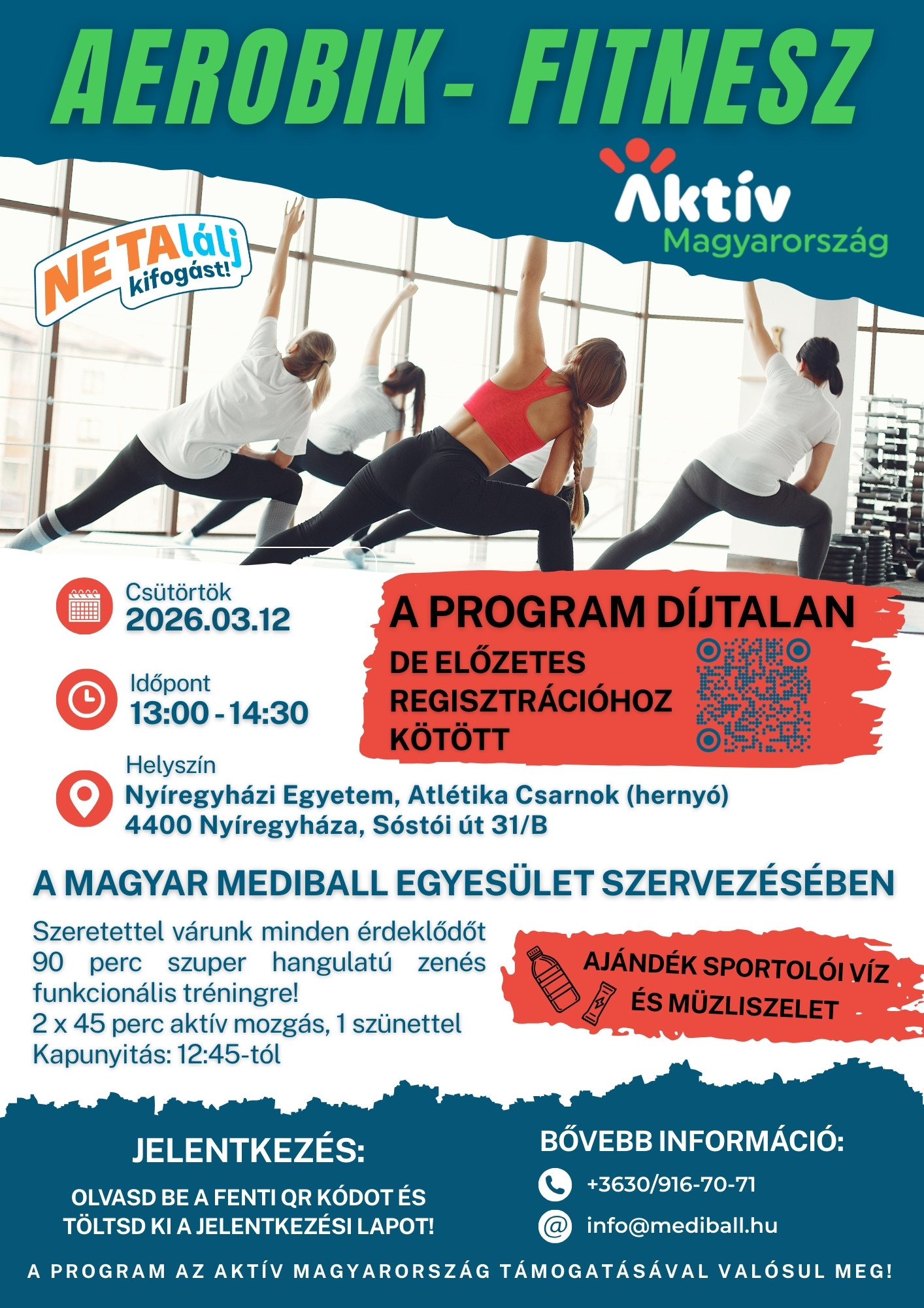 A Magyar MediBall Egyesület szervezésében szeretettel várunk minden érdeklődőt 90 perc szuper hangulatú zenés funkcionális tréningre! Az esemény ideje: 2026.03.12 13:00 - 14:30-ig Kapunyitás: 12:45-tól A program díjtalan, de előzetes regisztrációhoz kötött: https://forms.gle/BhTsKLzrSq4fLzbs7 A program az Aktív Magyarország támogatásával valósul meg!
