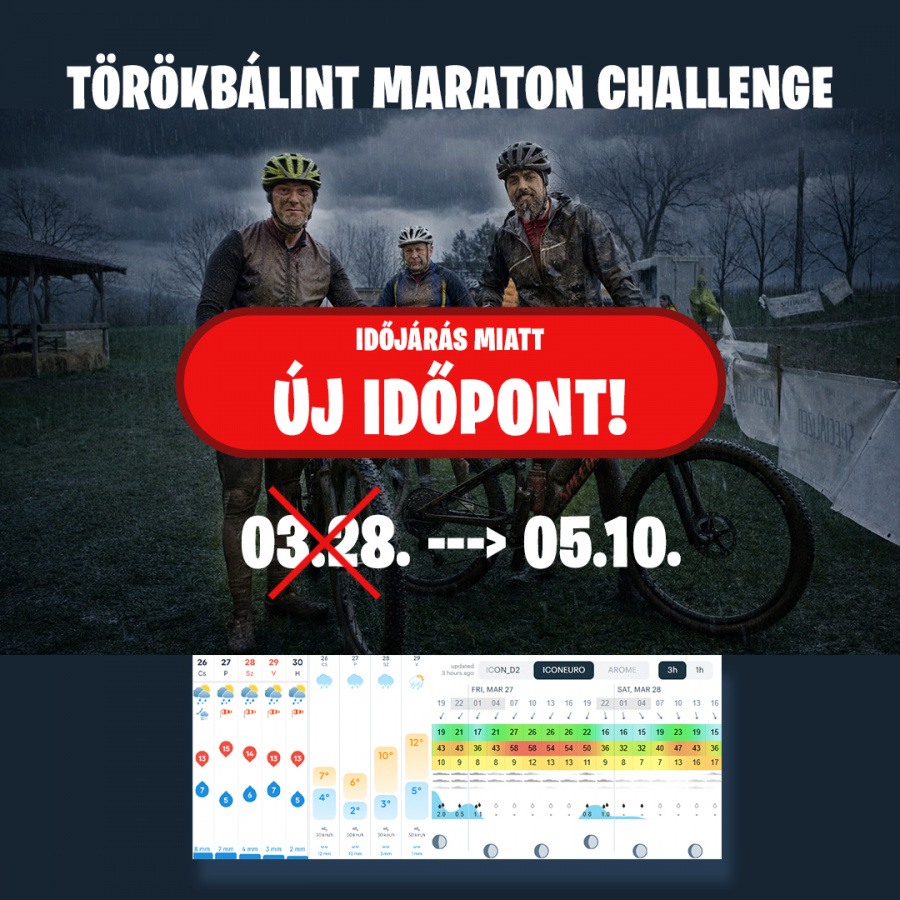 â ïž SajnĂĄlattal tĂĄjĂ©koztatunk benneteket, hogy a mĂĄrcius 28-ra tervezett elsĆ TörökbĂĄlinti Maraton Challenge a vĂĄrhatĂł rendkĂvĂŒl kedvezĆtlen idĆjĂĄrĂĄs miatt elmarad, Ă©s đ mĂĄjus 10-Ă©n, vasĂĄrnap kerĂŒl megrendezĂ©sre!! A döntĂ©st a rĂ©sztvevĆk biztonsĂĄga Ă©s a verseny minĆsĂ©ge Ă©rdekĂ©ben hoztuk meg, hiszen most szombatra đ§ïž ĂłriĂĄsi esĆt, đš erĆs