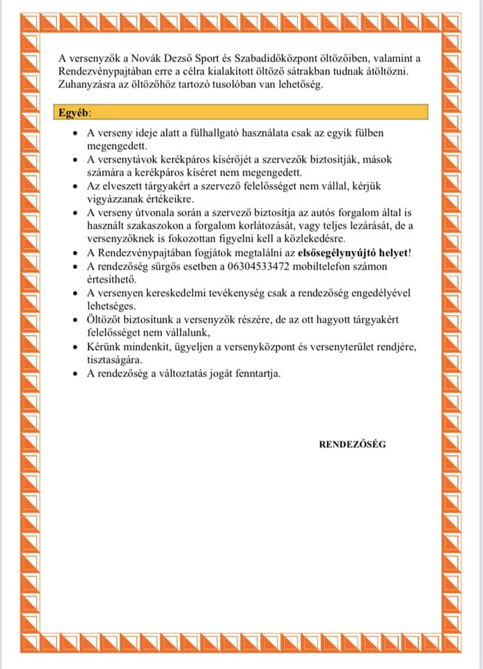 Útvonal: Novák Dezső Sport és Szabadidőközpont (Széchenyi u. 2/A), füves pálya Kategóriák: 6-8 éves korig 9-11 éves korig