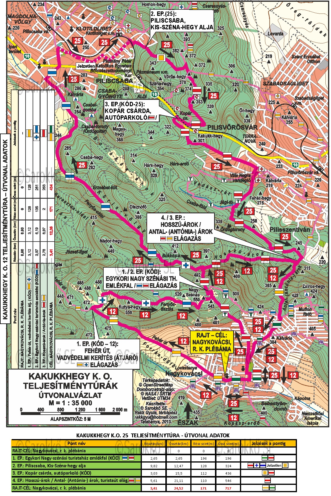 Útvonal: Nagykovácsi, Katolikus Templom, plébánia - zöld sáv, piros sáv - Nagy-szénás alja - piros sáv, kék kereszt, kék sáv - Kőris-völgy - kék sáv - Piliscsaba - kék sáv, jelzetlen, sárga négyzet - Vörös-hegy - piros sáv - Kakukk-hegy - piros sáv, sárga sáv - Antal-árok - zöld sáv - Nagykovácsi, Katolikus Templom, plébánia Nevezési díj: 1600 Ft Szintidő nincs, legkésőbb 16:00 órára a túra indulóinak be kell érniük a Célba. Írószer és saját pohár szükséges!