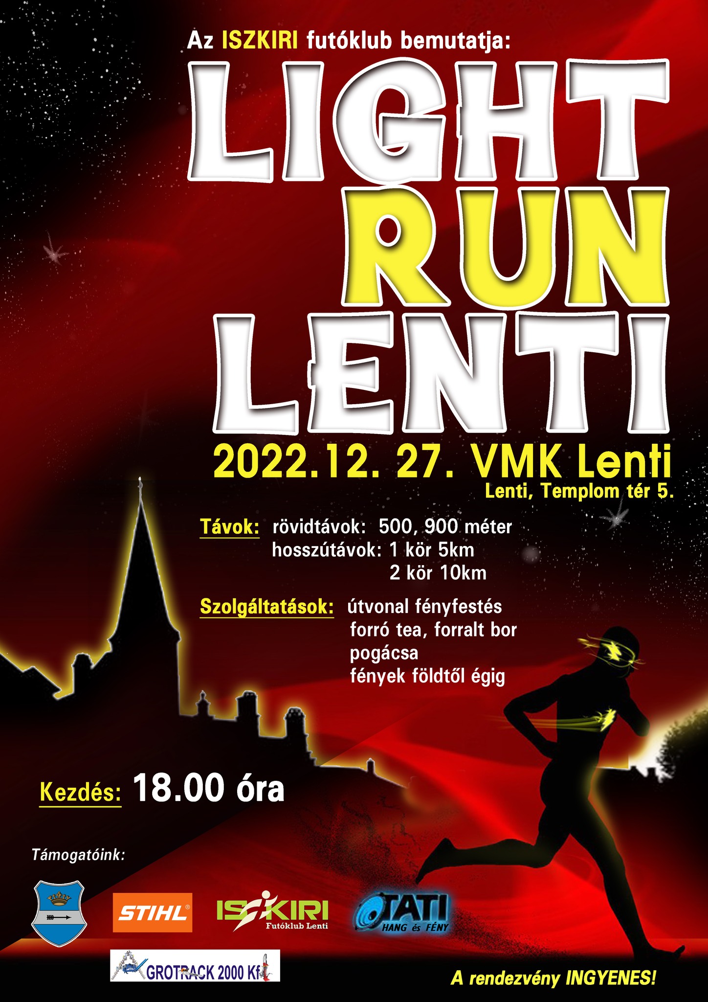 - az útvonalon végig fényfestés lesz. Forró tea, forralt bor és pogácsa várja a futókat